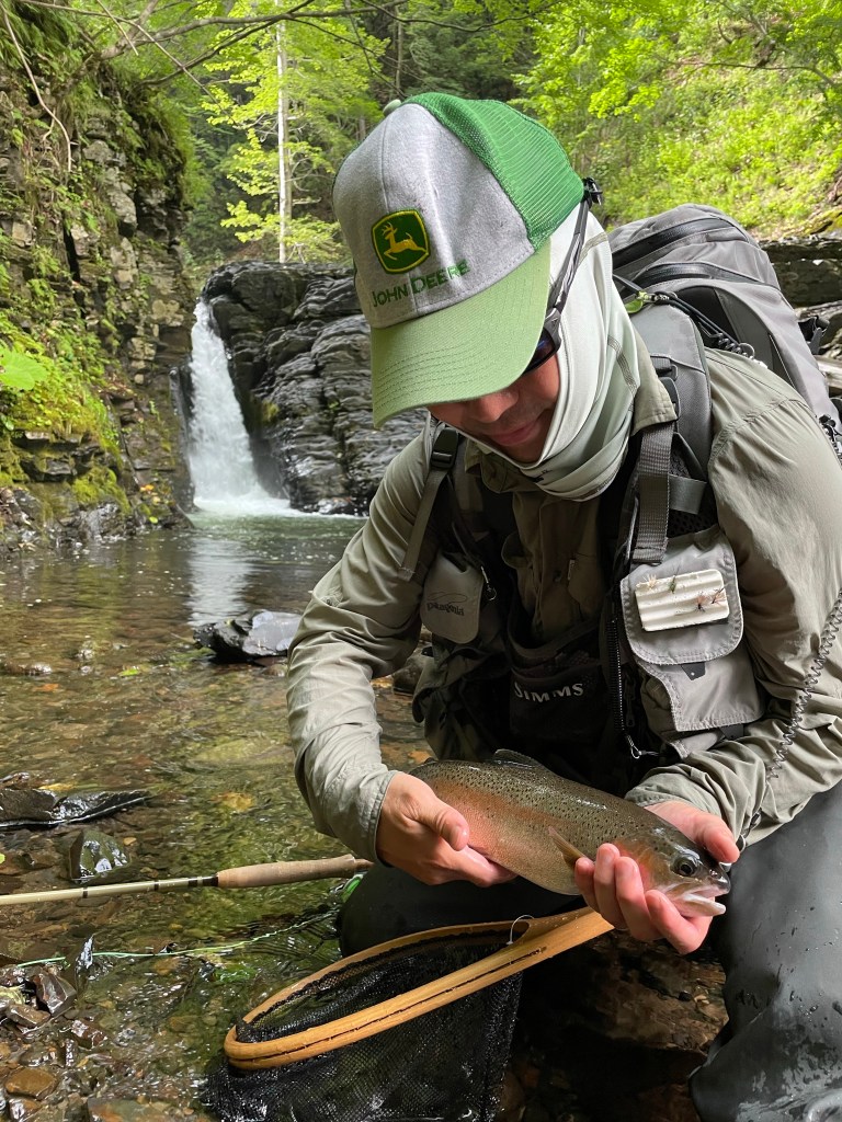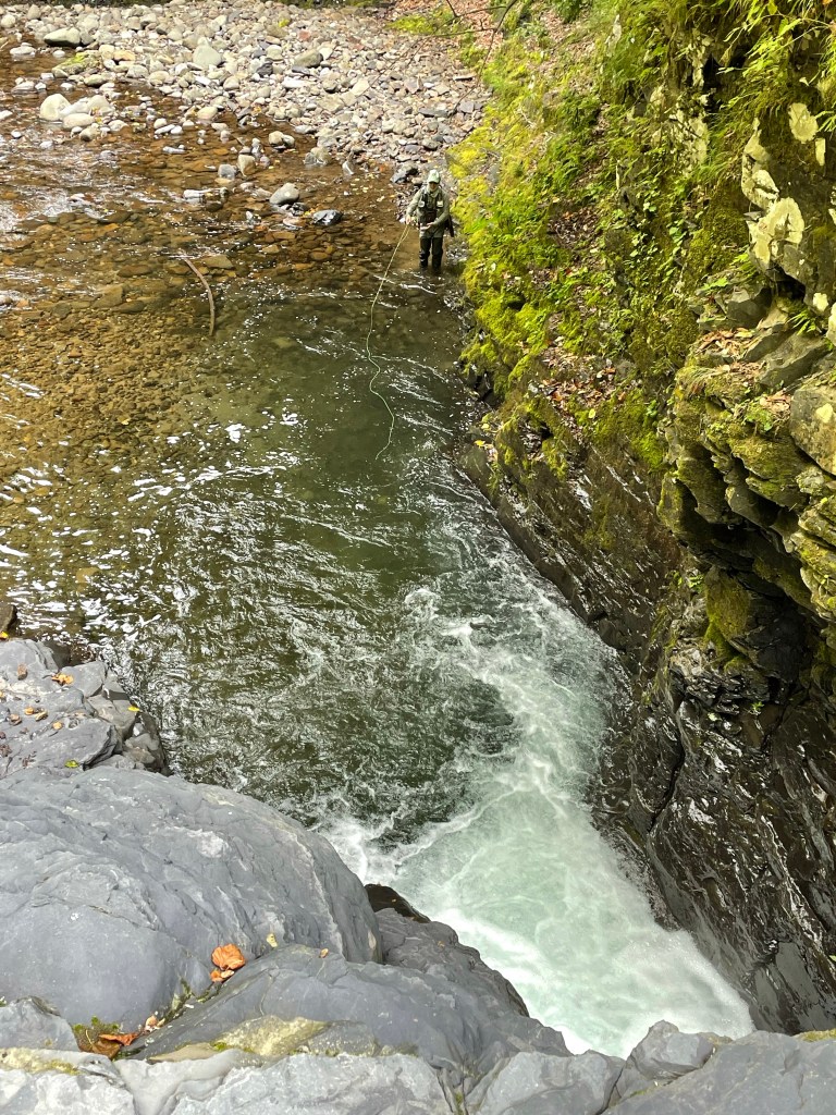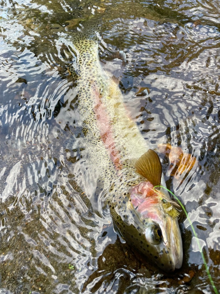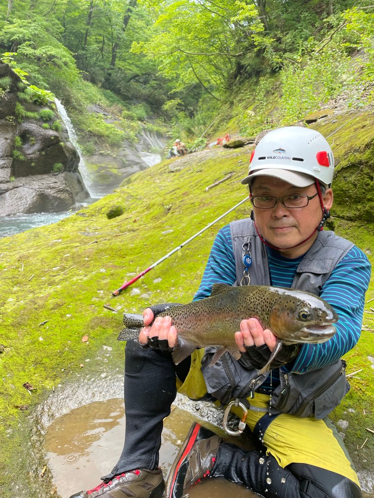 クライマックスとなる最後の滝壺で現れた38cmの虹鱒。パワーもあり取り込むのにかなりかかりましたが見事に釣り上げられました㊗️