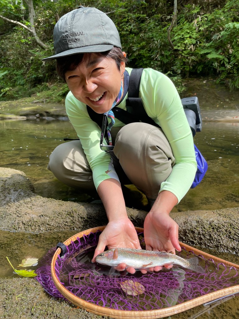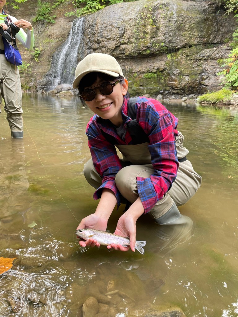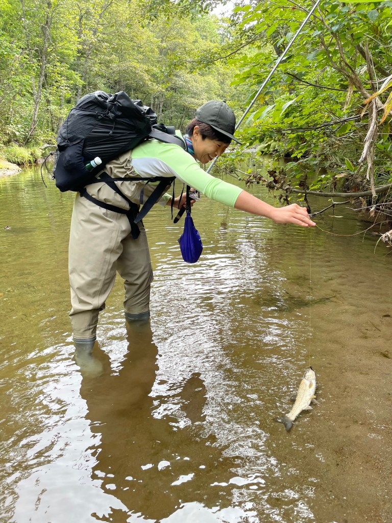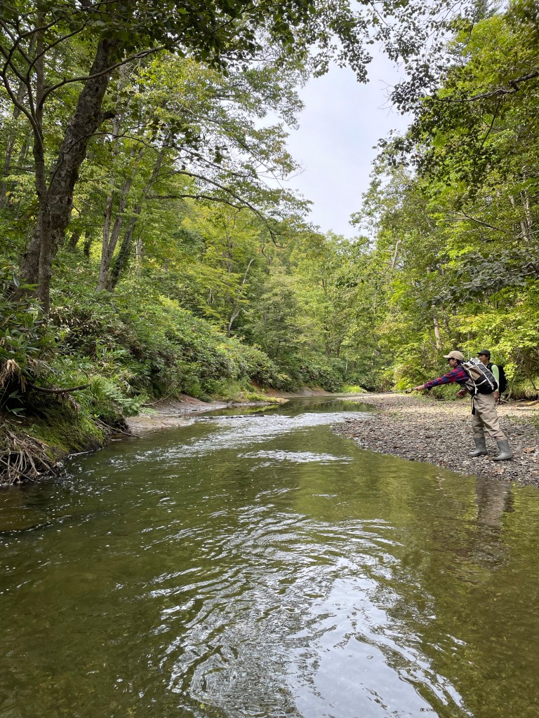 連日の渓流釣りツアー。初日はスキーや自転車に力が入っているアクティブな方々と渓流釣りツアーへ。