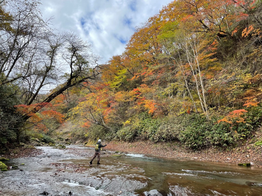 数日前の雨の影響で増水が引き切る少し手前のタイミングでした。水も冷たく魚の反応は控え目でたしたが、そのコンディションに合わせて楽しむという本来大切にしている事を実践出来たと思います。