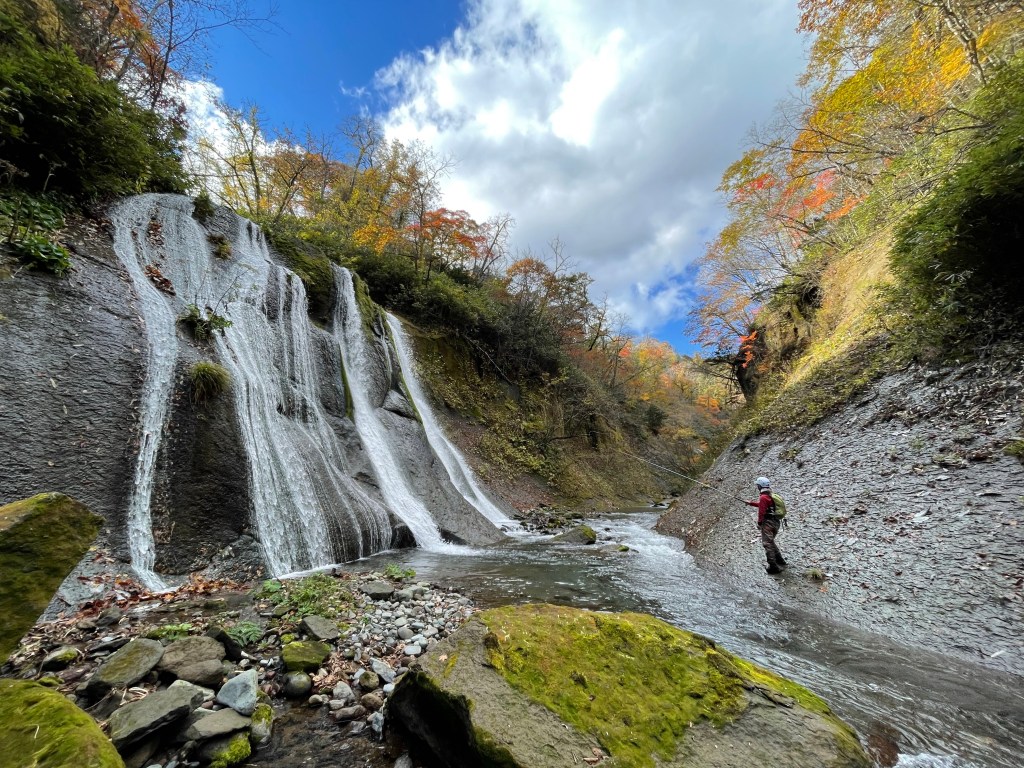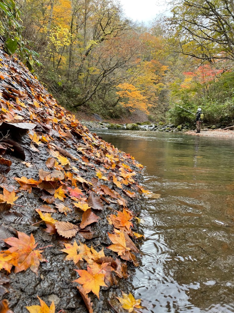 紅葉もピークを迎え、札幌近郊の山も白くなり始めました。この日は今シーズンラストの渓流釣りツアーへ。
