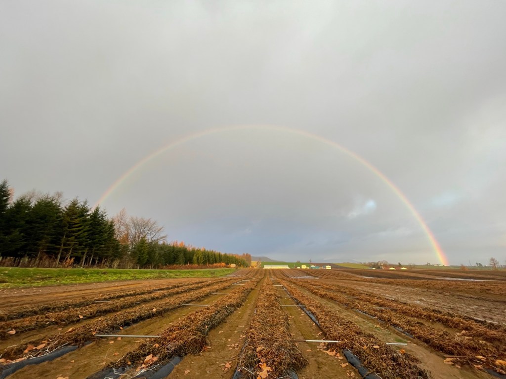 お疲れ様会という事で、佐藤家の大型ビニールハウスで雨の音を聞きながらBBQで夕食。