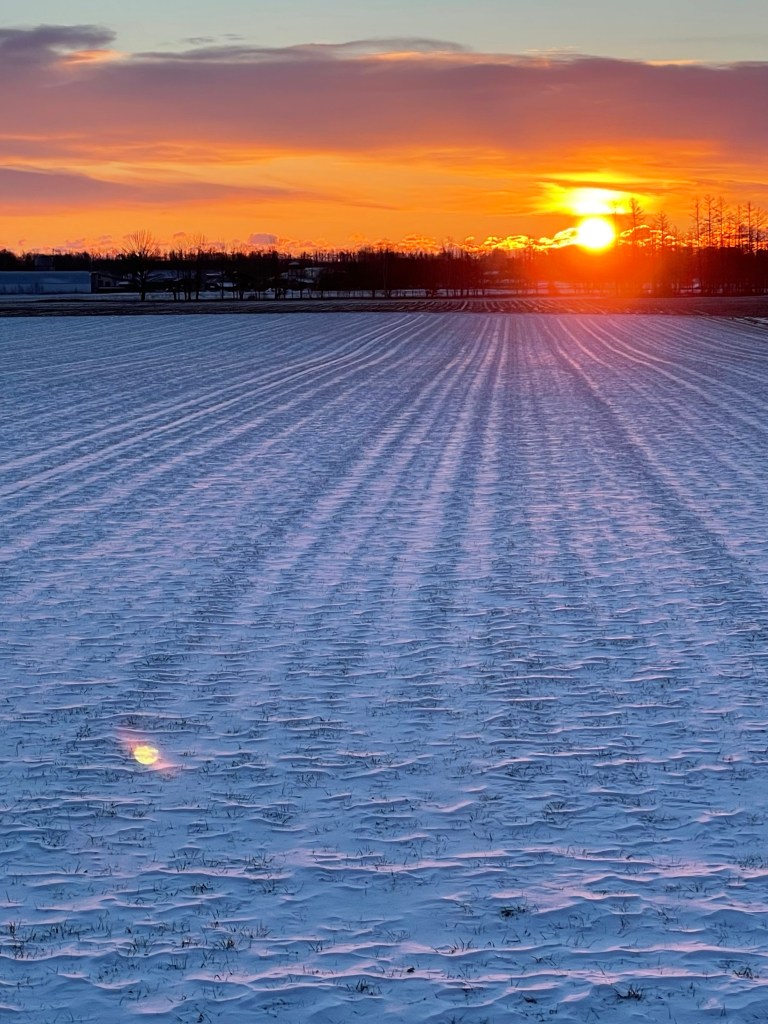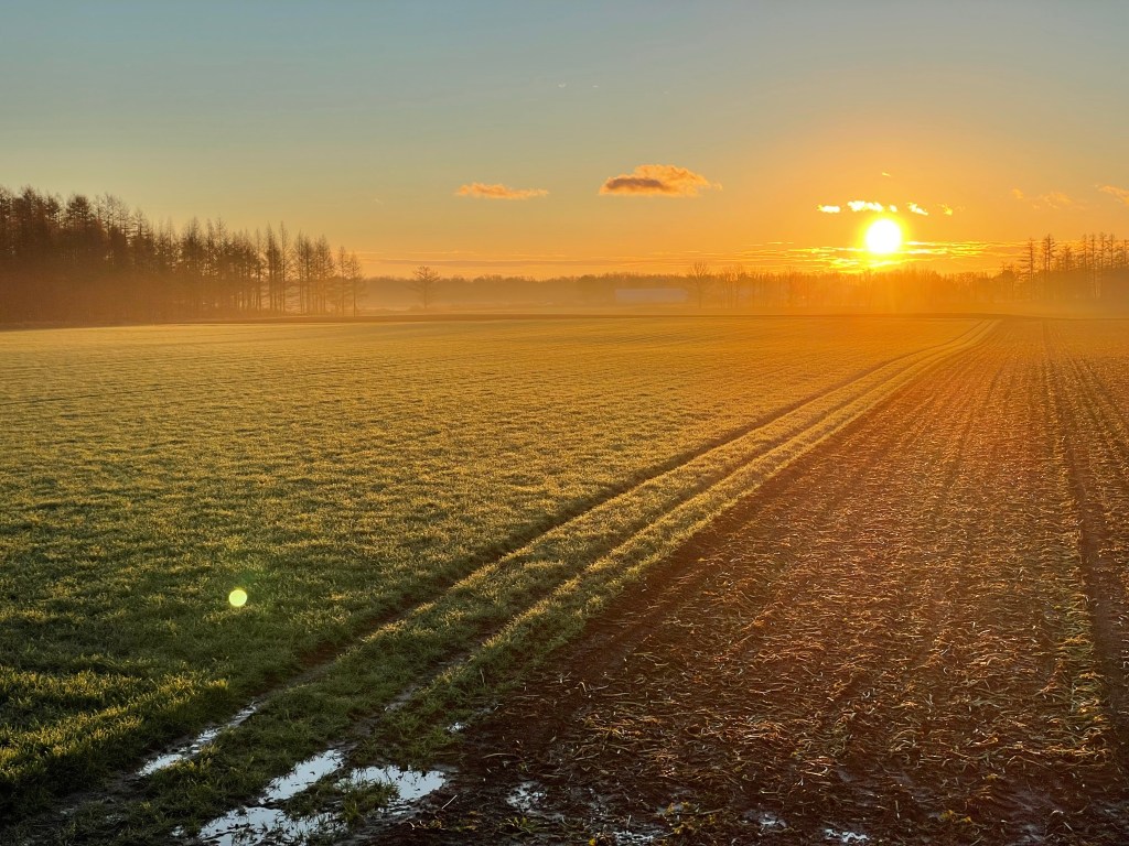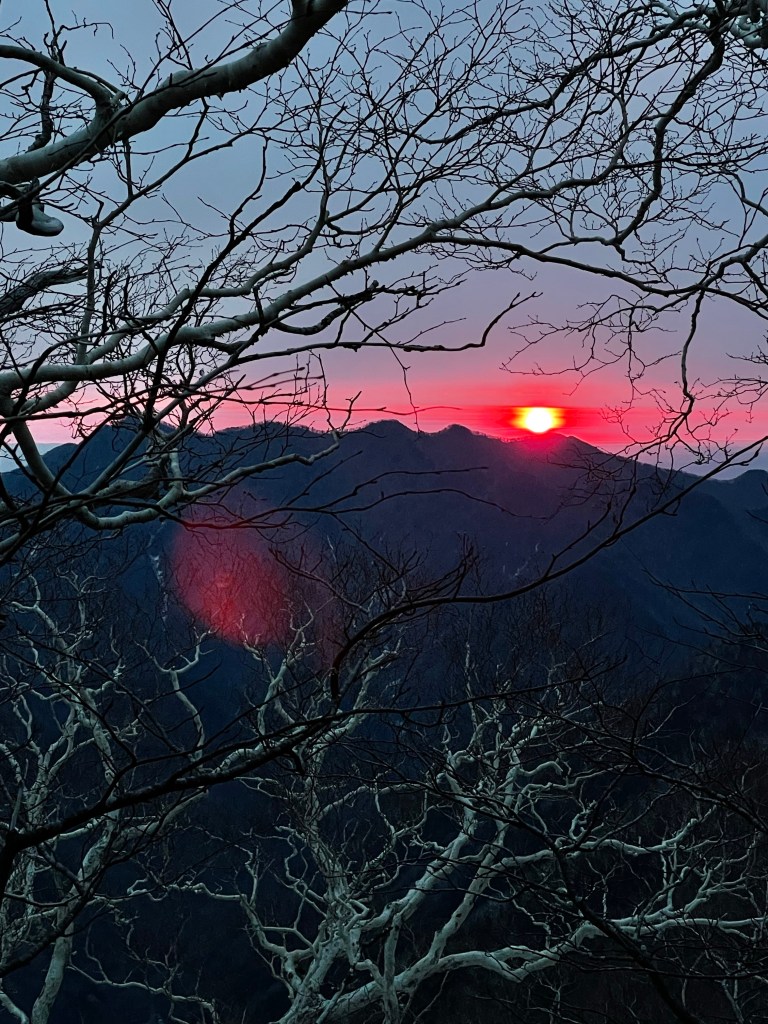 テントを撤収し、出発する頃、何とも言えない赤い朝焼けに見送られました。