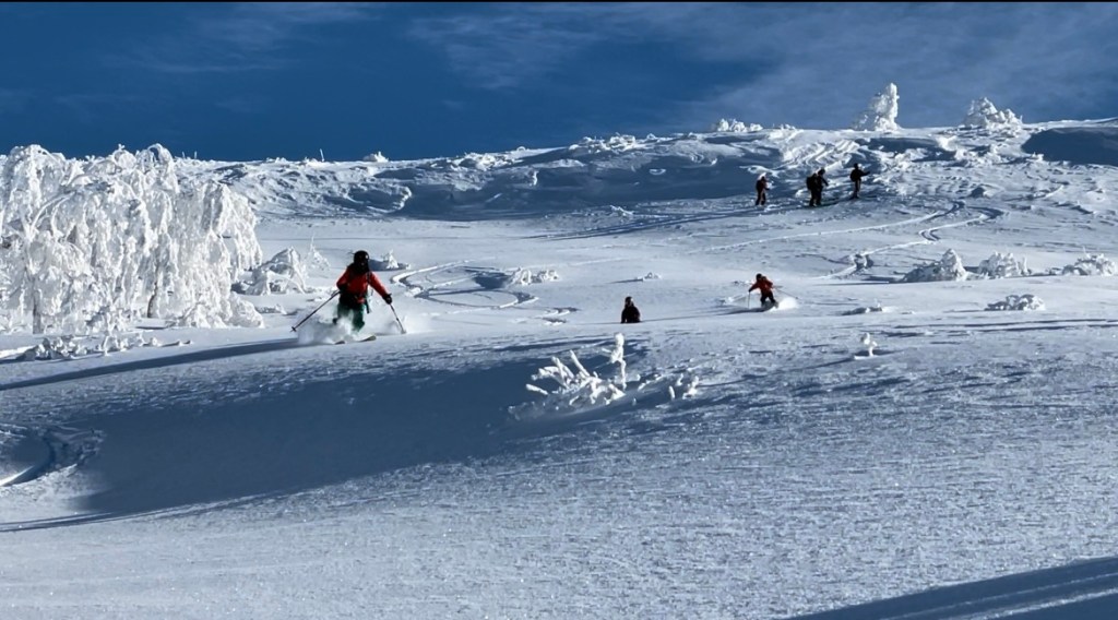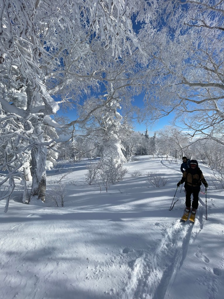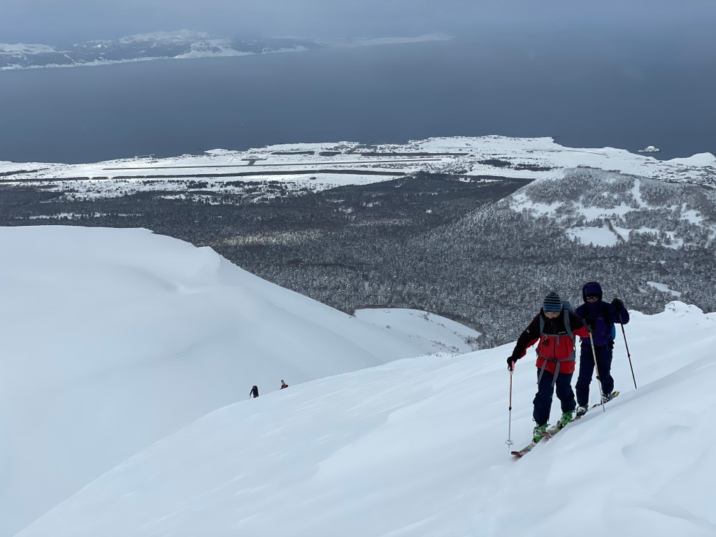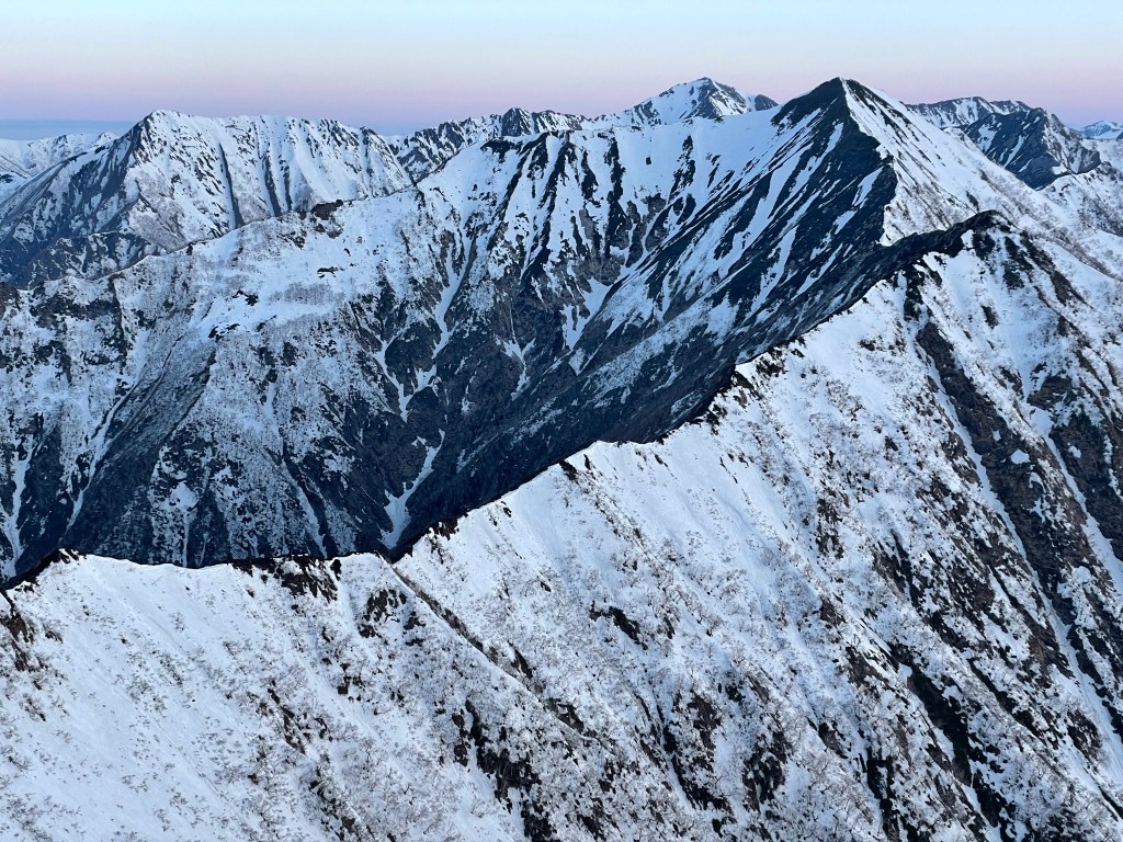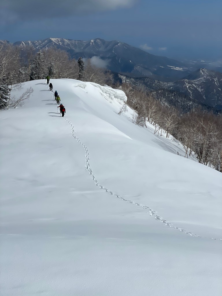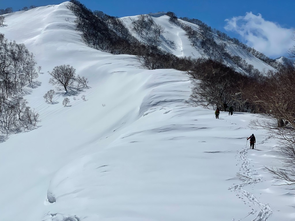 雪はまだまだカチカチで調子良く進んで行きましたが、稜線に上がり眺めた時に昨日の嫌な予感が現実のものになってきたのを感じました。。。