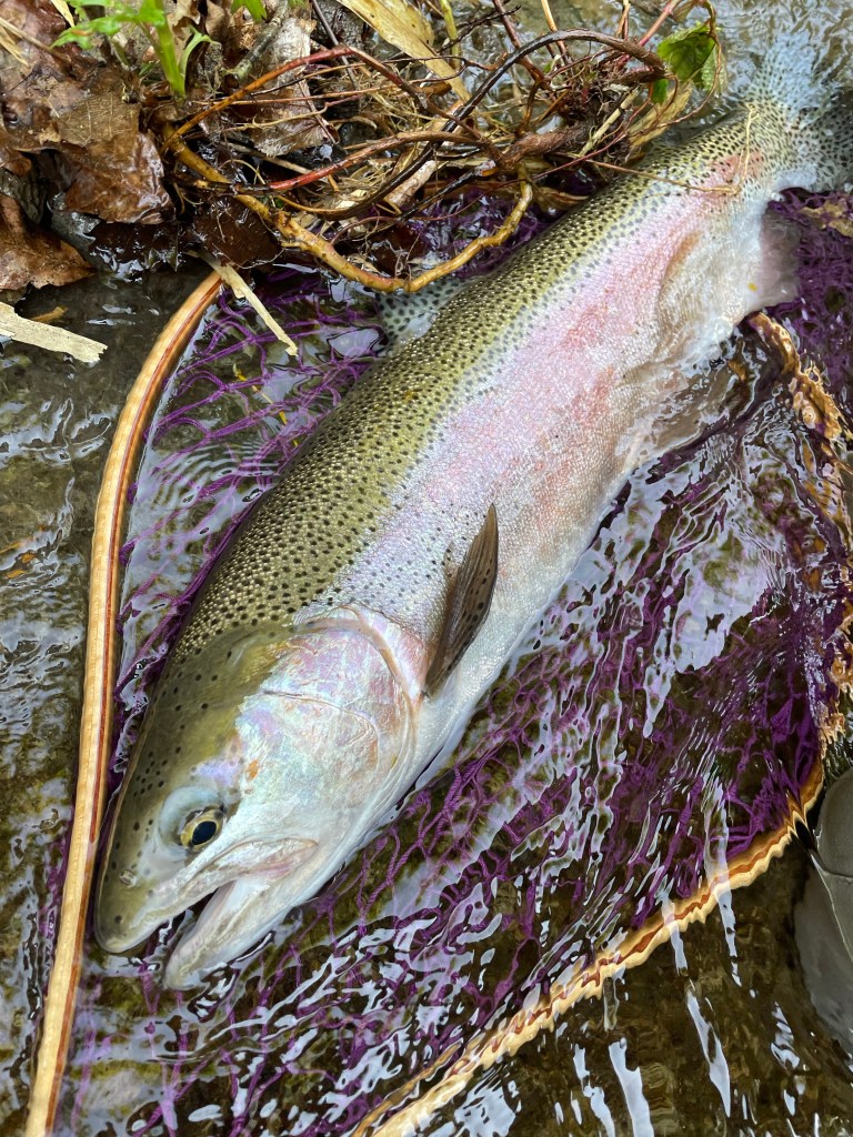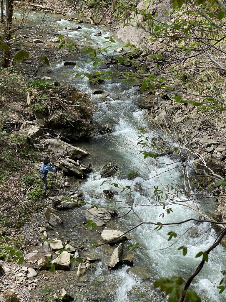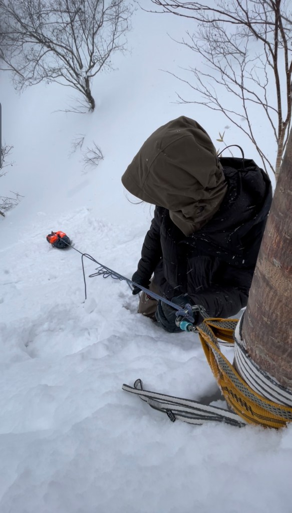 雪解け水の沢はとても冷たく、まともに濡れるとこれは危険❌ という事で最近得意の試み。
