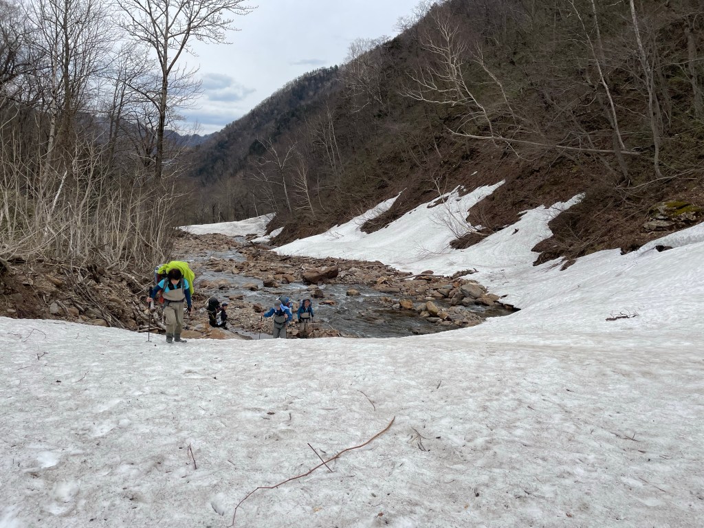 ベースキャンプへの復路も残雪の少なさから、やや困難でしたが余力を残して無事に戻りました。