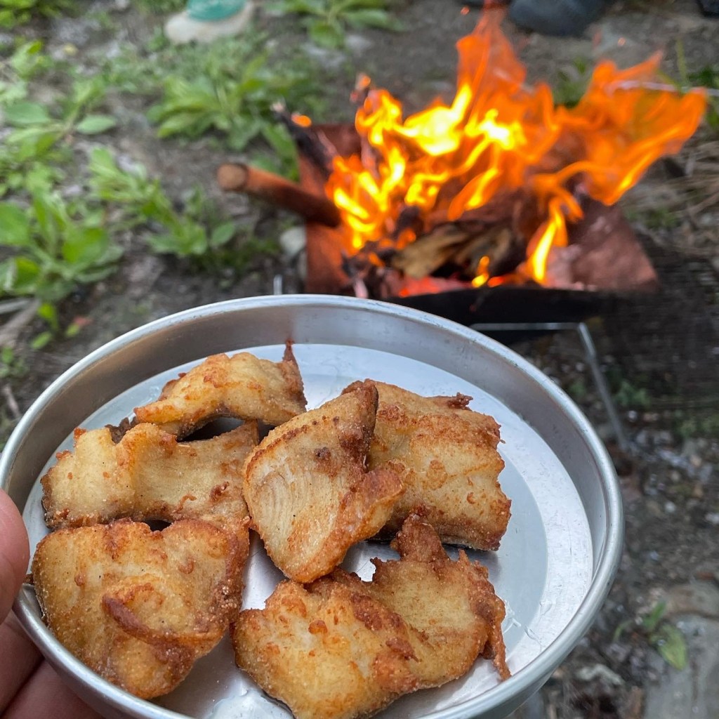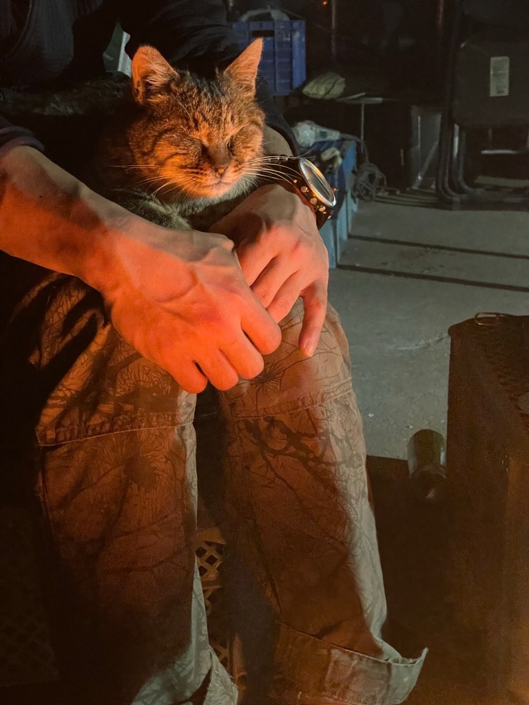 峻の膝の上で焚き火の温もりを満喫してました😽