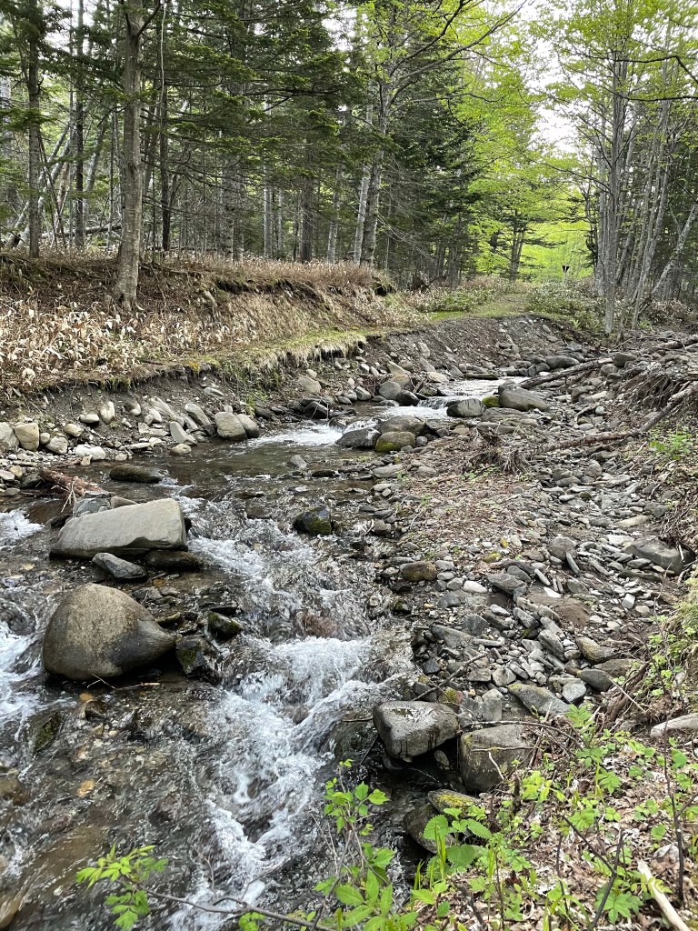 Day3 南沼を目指して今日も早朝出発。この区間はしばらーく藪があるので雨具着用にて。朝露の洗礼を受け、ちょっと寒くなっちゃうくらいまで先頭はしっかり濡れました😅
